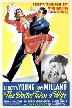 The Doctor Takes a Wife is a 1940 American screwball comedy film directed by Alexander Hall and starring Loretta Young, Ray Milland, Reginald Gardiner, Gail Patrick and Edmund Gwenn.[1][2] It was produced and distributed by Columbia Pictures. Young and Milland portray a best-selling author and medical school instructor, respectively, who find it convenient to pretend to be married, even though they initially loathe each other.