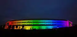 In early 2018, the Doughnut among others was again lit up in rainbow colours in support LGBTQ causes.[30]