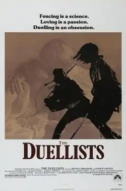 Charles Champlin of the Los Angeles Times wrote that the sword fights were "the best I've ever seen" and called the story "refreshingly different from standard film content."[22] Michael Webb of The Washington Post wrote, "The film has the pictorial beauty and rich period sense of Barry Lyndon (1975), but adds the narrative drive and passion that Kubrick's film lacked."[23] David Ansen of Newsweek wrote, "The best you can say about the film – the directing debut of Ridley Scott – is that it provides an unusually civilized experience in these days of movie barbarism… The worst that can be said is that Keitel and Carradine are so perversely cast as French hussars that, whenever they speak, the splendid illusion of nineteenth-century Europe is shattered."[24]