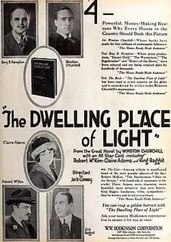 The Dwelling Place of Light is a 1920 American silent drama film directed by Jack Conway and starring Claire Adams, Nigel De Brulier and King Baggot.[1] It is based on the 1917 novel The Dwelling-Place of Light by the American novelist Winston Churchill.