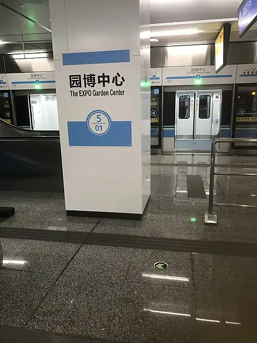 The EXPO Garden Center is a station on Line 5 of Chongqing Rail Transit[1] in Chongqing Municipality, China. It is located in Yubei District and opened in 2017.[2]