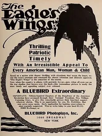 The Eagle's Wings is a 1916 American silent drama film directed by Robert Z. Leonard and starring Grace Carlyle, Vola Vale and Herbert Rawlinson.[1]