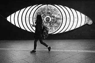 The Eye of Shinjuku is a sculpture by Yoshiko Miyashita, installed in Shinjuku Station west gate underground square, in Tokyo, Japan. The 1969 sculpture is below the Subaru Building, and has been described as "the most eye-catching piece of public art in town".[1]