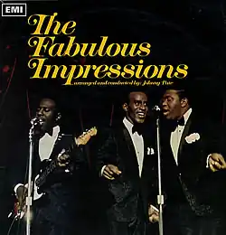 The Fabulous Impressions is an album by the American soul music group the Impressions, released in 1967.[5] It includes a cover of the Gene McDaniels song "One Hundred Pounds of Clay".