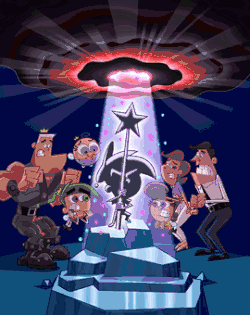 A polar bear—the guardian of the ice wand—raises the ice wand from beneath the ocean. Everyone urges Timmy to destroy The Darkness, but he refuses. Timmy realizes that every time The Darkness attacks, it's only out of self-defense. Timmy has fairies add an ice wand to each planet of the Solar System. Along with the white wand at Fairy World, the ice wands create a celestial smile that projects its light into The Darkness. The smile transforms it into a bright sun, The Kindness, and Timmy concludes The Darkness was only looking for a friend. The group returns to Dimmsdale, where an Eliminator, dubbed a 'Hug'inator by Cosmo, crashes in front of them and spews out everyone who had been sucked in. Everyone parties in Fairy World and celebrates the chosen one's accomplishment, though Jorgen informs Timmy that he's going to erase his friends, enemies, and family's memories of the events when the party's over. Timmy, having already figured that out, states he's just happy he doesn't have to find any more wands.