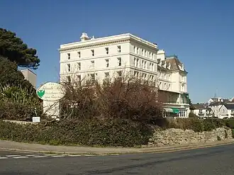 The Falmouth Hotel is a hotel on the seafront in the northeastern part of Gyllyngvase in Falmouth, Cornwall. The oldest hotel in Falmouth, it opened on 9 May 1865 to provide to tourists due to the new railway station being linked nearby.[1] It is located next to the Royal Duchy Hotel. The foundation stone was laid on 6 August 1863, by Robert Tweedy and it cost about £9000.[1] Additions were added in 1880, 1898 and 1972.[2] The hotel has 71 rooms and is set in 5 acres (2.0 ha) of landscaped gardens.[3]