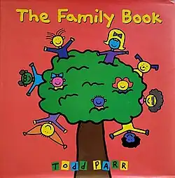 The Family Book is a 2003 children's picture book written and illustrated by Todd Parr that details the daily lives of all kinds of families.[1] Each unique family structure is depicted with vivid illustrations that complement the book’s themes of family diversity and inclusivity.[2] The book has been adopted in various educational settings as a teaching tool to normalize the acceptance of various family forms.[3] The Family Book has been challenged repeatedly and has sparked controversy in certain regions due to its inclusion of same-sex marriages as a family structure in the book.[4][5]