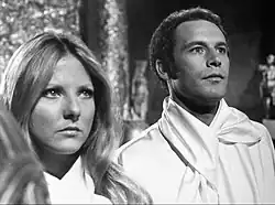 The travelers encounter a city where the women are subservient to brutish male authority. The women mutiny and imprison the male travelers in a strange black void, and Liana appears to join their cause. Guest star: Joan Collins | |||