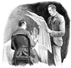 ![]() Watson reads Holmes the latest news about their client John Openshaw, 1891 illustration by Sidney Paget | |||