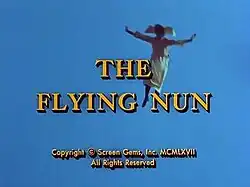 During its first two seasons, The Flying Nun aired on Thursday nights at 8:00pm EST, where the series competed in the ratings with Daniel Boone on NBC and Cimarron Strip on CBS.[12] The show was an instant hit, with high ratings and was declared the "hit of the season;" however, the ratings dropped as the season progressed.[13] During its second year, the series was scheduled against Daniel Boone and Hawaii Five-O. During its final season, the series was moved to Wednesday nights at 7:30pm EST, scheduled opposite The Glen Campbell Goodtime Hour. All of the competing shows ranked higher in the ratings than The Flying Nun, which eventually led to its cancellation. During its three-year run, the series was a part of a three-show comedy block on ABC that also consisted of Bewitched and That Girl.[14] Despite its early popularity, the show's ratings never broke the Nielsen top thirty and the final episode aired on April 3, 1970. However, its 83 episodes have consistently attracted new audiences since its initial run.
