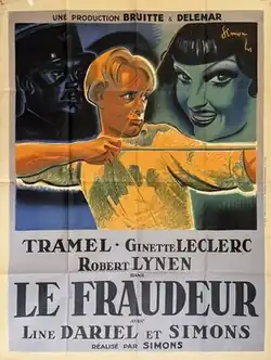 The Fraudster (French: Le fraudeur) is a 1937 French crime drama film directed by Léopold Simons and starring Félicien Tramel, Ginette Leclerc and Robert Lynen.[1] The film's sets were designed by the art director Émile Duquesne.