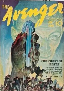 "The Frosted Death" is the fifth pulp magazine story to feature The Avenger. Written by Paul Ernst, it was published in the January 1, 1940 issue of The Avenger magazine.