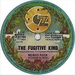 "The Fugitive Kind" is the debut single by Australian rock band Mondo Rock. It was released in September 1978. It peaked at number 49 on the Kent Music Report.[1] The song appears as a bonus track for Mondo Rock's debut studio album Primal Park.[2][3]