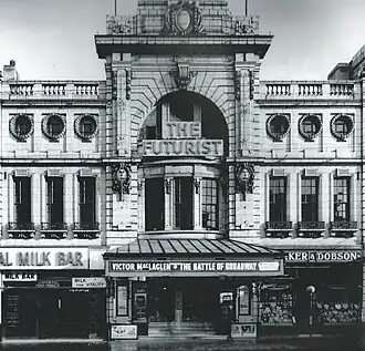On 14 August 1916, the cinema changed its name to 'City Picture House'[1] due to another cinema opening in Clayton Square which was called 'Liverpool Picture House'. And in October 1920 a new company was formed 'Futurist (Liverpool) LTD' to purchase the cinema and the two shops for £167,000.[1] The building was a leasehold from Liverpool Corporation[2] and from this time the Futurist (and the Scala, adjacent, demolished in 2017) were both controlled by Levy Cinema Circuit, who also had cinemas in Birmingham.