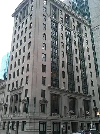 The Garrett Building is a historic office building located at 233-239 Redwood Street, Baltimore, Maryland, United States. It is a 13-story, limestone faced skyscraper which combines the Commercial style with Renaissance Revival detailing. It was designed and built in 1913 by the Baltimore architects J.B. Noel Wyatt and William G. Nolting for the Garrett and Sons investment banking company, a leading Baltimore financial institution offering a wide variety of services in several cities.[2]