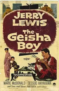The Geisha Boy is a 1958 American comedy film starring Jerry Lewis, distributed by Paramount Pictures. Filmed from June 16 to August 7, 1958, it had its first screening in New York City on December 19, 1958.[4][5] This motion picture featured the film debut of Suzanne Pleshette.
