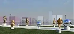 | Medium | 5 bronze sculptures, 3 stainless steel spheres, walkway and plaza with plaques offering audio links for descriptions of each sculpture |