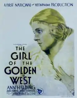 The Girl of the Golden West is a 1930 American Pre-Code Western film produced and distributed by First National Pictures, a subsidiary of Warner Bros., directed by John Francis Dillon and starring actress Ann Harding and James Rennie. Harding's then-husband, Harry Bannister, plays the villain Jack Rance. David Belasco wrote, directed, and produced the original play in 1905 which starred Blanche Bates.[1]