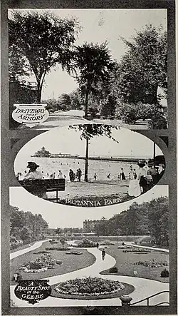 The Glebe was one of Ottawa's first suburbs.[5] In 1871 James Whyte, one of the leading merchants of the town, built a large residence on Canal Road on the north side of the waterway at midpoint between what is now Bank Street and Bronson Avenue, which served the Basilian Fathers in the 1960s. In 1872, James Whyte moved into a new home on Bank Street near Holmwood Avenue, which served the community in the 1960s as a residence for older people. In 1882 the creation of Central Park and the construction of the new Canada Atlantic Railway terminal on the west side of the Rideau Canal at the end of the Glebe encouraged the development of the southern section of the city.[4]