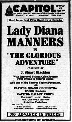 - ^ a b Rare Silents and Talkies (31 January 2024). The Glorious Adventure 1922 Rare All Color British Silent Feature Film Victor McLaglen Diana Manners. Retrieved 18 May 2025 – via YouTube.