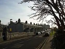 Alma Terrace was built in 1854, since restored and designated Grade II.[33] The wash houses and connecting boundary wall to the rear is also Grade II Listed.[34] The Governor's House (102 Grove Road), with its front boundary wall, is Grade II Listed, and was formerly the Governor's House to the prison, built around 1850.[35] Additionally the prison itself has various Grade Listed features. Ivy Bank, a detached house on Grove Road, of mid 19th century origin, is Grade II Listed, along with its boundary wall.[36]