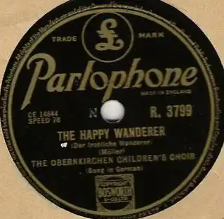 Die Isarspatzen, Herbert Beckh und das Tanzorchester des Bayerischen Rundfunks Munich have recorded a German version of the song "Der fröhliche Wanderer". Electrola released that recording in 1955 as catalog number EG 8082.[6]