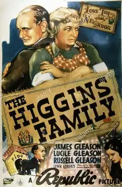 The Higgins Family is a 1938 American comedy film directed by Gus Meins and written by Paul Gerard Smith and Jack Townley. The film stars James Gleason, Lucile Gleason, Russell Gleason, Lynne Roberts, Harry Davenport and William Bakewell. The film was released on August 29, 1938, by Republic Pictures.[1][2][3]
