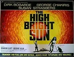 The High Bright Sun is a 1964 British action film directed by Ralph Thomas and starring Dirk Bogarde, George Chakiris and Susan Strasberg.[2] It is set in Cyprus during the EOKA uprising against British rule in the 1950s. It was based on a 1962 novel by Ian Stuart Black.[3]