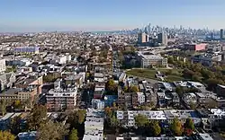 Hilltop is the eastern section of the Journal Square district of Jersey City, New Jersey.[1][2][3] The name is a reflection of its location atop Bergen Hill, the southern portion of the Hudson Palisades, on either side of the cut, or excavated ravine, through which the Port Authority Trans Hudson rapid transit system travels, offering some streets views of Downtown Jersey City, the New York Skyline, and the Upper New York Bay.