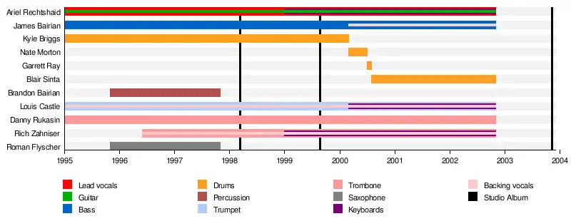 | 1997 | Forget the World[5] | Fueled by Ramen/Vagrant/Stiff Dog Records | First album. Last album with saxophonist Roman Flyscher and percussionist Brandon Bairian. |