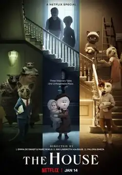 The House is a 2022 British stop-motion adult animated anthology television special created by Enda Walsh. The production is divided into three chapters telling different stories spanning different worlds, interior designs, and characters (consisting of humans, anthropomorphic rodents and insects, and felines) in the same house; each story deals with themes of madness, wealth, and the pursuit of true happiness.