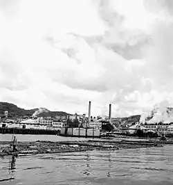 The Powell River Company originally purchased 19 ships for their fleet. Of the steel or wooden-hulled vessel, Charleston was the first ship to arrive on 25 October 1930. The ship was removed in 1961.[1][2] Huron was the second ship to arrive, in August 1931. The hulk sank in a storm on 18 February 1961.[1][2] Blatchford was a wooden vessel that arrived in 1936 and sank sometime in 1939.[1] Malahat was a wooden vessel that arrived in 1945, but was scuttled a year later.[1] Island Carrier arrived in December 1945, but was returned to commercial service in 1954.[1] Albertolite was added in 1946, but was scrapped in 1960.[1] Malaspina arrived in 1946, sank in 1949, and was raised and scrapped in 1951.[1] Coaticook was added in 1953 and scuttled off Race Rocks in 1961.[1] Cardena was brought in to replace Coaticook but was removed in 1966.[1]