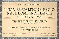 The Humanitarian Society School for "arts and trades" was and still is a historical branch of the Humanitarian Society, even today, in its headquarters in Via Daverio, behind Milan's Palazzo di Giustizia. The school was the forerunner to Monza's famous ISIA, established in 1922.