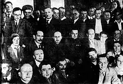 In August 1933, the publishing house History of Factories and Industrial Enterprises editorial board decided to commission a book on the construction of the White Sea – Baltic Sea Canal. Under the guidance and control of the Joint State Political Directorate (OGPU), the publishing house assembled a “Writers' Brigade” of 120 writers from across the Soviet Union who met in Moscow on August 17, 1933 for a pre-trip orientation where the head of the Belomor prison camp provided background information on the project.[1] Maxim Gorky, though not a participant in the August orientation or tour of the construction site, was chosen as the head editor and leader of the writers' brigade.[2]
