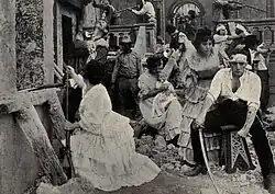 In order to shoot the film, Gaston Méliès moved his production and distribution unit, the Star Film Company from its location in New York to San Antonio in January 1910. Méliès promised to produce a historically "correct" depiction of the Battle of the Alamo. The film was directed by William F. Haddock.[4] The film was shot in San Antonio, Texas and on location at the Alamo. One hundred cadets from the Peacock Military Academy portrayed the Mexican Army.[8] Wilbert Melville "conceived the idea, designed the plot and formulated the scenario" for the film.[9] The film was produced with the permission of the mayor.[10] The film was released on May 25, 1911.[11] One estimate of the cast claimed some five hundred people were present in the picture, but this is not supported by other details of the production.[2]