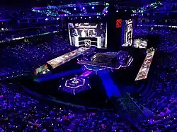 To seed the elimination bracket for the main event, round robin group stages featuring two groups of nine teams were played from August 15–18, 2019.[6] In it, each of the teams played each other within their group in a two-game series. The top four placing teams of each group advanced to the upper bracket of the main event, while fifth through eighth advanced to the lower bracket. The lowest placed team from both groups were eliminated from the competition.[7] The main event was held at the Mercedes-Benz Arena in Shanghai from August 20–25, making it the first International to take place in China.[8] An all-star game, featuring the top 10 players based on their fantasy points during the group stage, was also played during the event.[9]