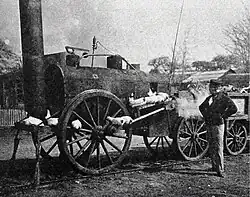 It is 1830 in Likskillet. The Iron Mule is a steam engine used to haul converted carriages on a rail. A cow on the tracks delays their start. The driver has to take the tall funnel off for the engine to go through the low tunnel.