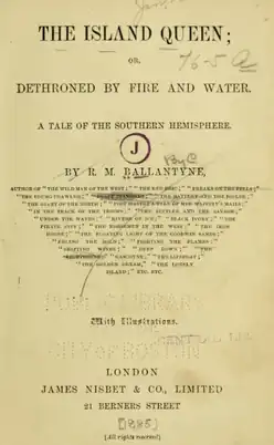 The Island Queen: or Dethroned by Fire and Water: a tale of the Southern Hemisphere is an 1885 novel written by Scottish author R.M. Ballantyne.[1] The novel first appeared in Volume VI of Young England,[2] an annual magazine published in London from 1880 to 1937. It was then published in paperback by J. Nisbet & Co.[3] This novel was Ballantyne's 79th publication,[4] written in the latter half of his career.
