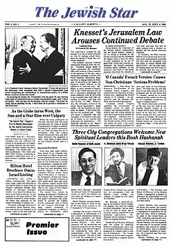 - ^ "'The Jewish Star' Makes its Debut in Edmonton," Edmonton Jewish Star, Vol. 1, No. 1, December 1980, p. 1.
