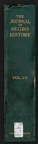 The Journal of African American History, formerly The Journal of Negro History (1916–2001), is a quarterly academic journal covering African-American life and history. It was founded in 1916 by Carter G. Woodson. The journal is owned and overseen by the Association for the Study of African American Life and History (ASALH) and was established in 1916 by Woodson and Jesse E. Moorland. The journal publishes original scholarly articles on all aspects of the African-American experience.[1] The journal annually publishes more than sixty reviews of recently published books in the fields of African and African-American life and history.[2] As of 2018, the Journal is published by the University of Chicago Press on behalf of the ASALH.[3]