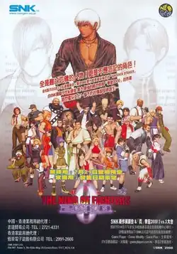 ![]() Poster showing K' in the center, Iori Yagami and Kyo Kusanagi in the background, and the rest of the playable characters below. | |