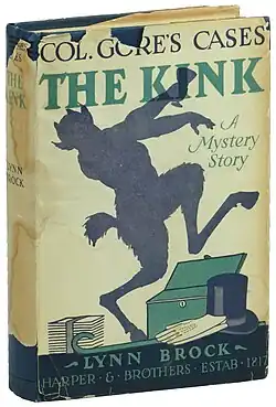 The Kink is a 1927 mystery detective novel by the Irish-born writer Lynn Brock. It was the third novel in his series featuring the character of Colonel Wyckham Gore,[1] one of many investigators active during the Golden Age of Detective Fiction. It is sometimes referred to as Colonel Gore’s Third Case. The novel is noted for being comparatively sexually explicit for the era.[2] Dashiell Hammett wrote a contemporary negative review of the book in The Saturday Review.