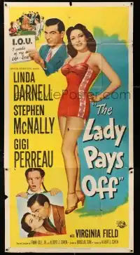 The Lady Pays Off is a 1951 American romantic comedy film starring Linda Darnell, Stephen McNally and Gigi Perreau, and directed by Douglas Sirk. A teacher finds herself with a large gambling debt that she has to pay off in an unusual way.