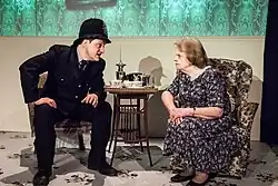 The Ladykillers is a 2011 stage adaptation written by Graham Linehan based on the 1955 Ealing comedy film of the same name. The play premièred at the Liverpool Playhouse in November 2011, directed by Sean Foley.[1] It then transferred to the Gielgud Theatre in London, opening on 7 December 2011 (after previews from 26 November 2011), and closed after a successful and extended run on 14 April 2012.[2] The production, with a different cast, then embarked on a UK national tour from September to December 2012.[2][3] The play returned to Ealing in March 2017, when it was performed at The Questors Theatre, located less than 500 metres from Ealing Studios, where the original 1955 film was shot.[4] The play had its North American premiere at the Shaw Festival in Niagara-on-the-Lake, Ontario, Canada in June 2019 with Damien Atkins as Professor Marcus and Chick Reid as Mrs. Wilberforce.[5]