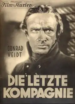 The Last Company (German: Die letzte Kompagnie) is a 1930 German war film directed by Curtis Bernhardt and starring Conrad Veidt, Karin Evans and Erwin Kalser.[1] It was part of the popular cycle of Prussian films which portrayed patriotic scenes from Prussian history. It was shot at the Babelsberg Studios of UFA in Berlin. The film's art direction was overseen by Andrej Andrejew who designed the film's sets. It was shot on location around Havelland in Brandenburg. It is also known by the alternative title Thirteen Men and a Girl. It was later remade in 1967 as A Handful of Heroes.