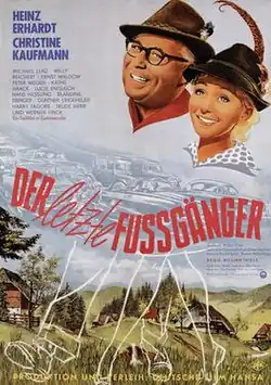 The Last Pedestrian (German: Der letzte Fussgänger) is a 1960 West German comedy film directed by Wilhelm Thiele and starring Heinz Erhardt, Christine Kaufmann and Käthe Haack.[1] It was shot at the Göttingen Studios. The film's sets were designed by the art director Walter Haag.