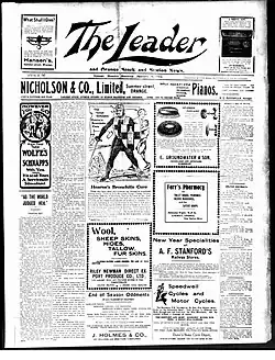 Some issues of the paper have been digitised as part of the Australian Newspapers Digitisation Program of the National Library of Australia.[5][6] The 10 millionth newspaper page made available through the service was the 31 July 1915 front page of The Leader.[7]