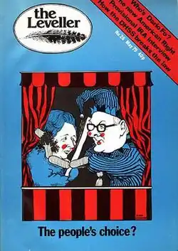 The Leveller was noted on the British left for an eclectic design and visual style, particularly in its cover stories, representing the values and decisions of an open collective, rather than those of traditionally-designated editors, copy editors and writers and reporters. Cover stories during the magazine's life included:[7]