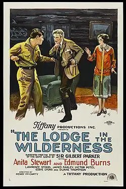 The Lodge in the Wilderness is a 1926 American silent action film directed by Henry McCarty and starring Anita Stewart, Edmund Burns, and Larry Steers.[1][2] It is a Northern film based on a 1909 short story of the same title by Canadian writer Gilbert Parker.