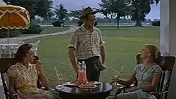 Alex North composed the film's score, which leaned toward a jazz style. "The Long Hot Summer" was the only song written by North to be used as the title track of a film. Composed in an AABA form, it was characterized by its lyricisms and its "tense dissonant" jazz-figures. The lyrics of the song were written by Sammy Cahn, while instrumental variations of the melody were used throughout the film, underlining the progression of the relationship between Ben and Clara.[24] Recorded by Jimmie Rodgers, it was released by Roulette Records, reaching number 77 on Billboard's Top 100 Sides in June 1958.[25] The orchestra was conducted by Lionel Newman.[26][27]